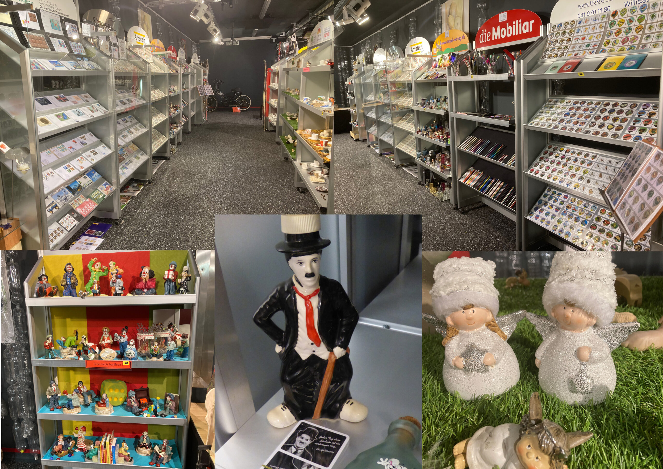 Sonderausstellung: 15 Mitglieder des Flaschenvereins haben hier schon ihre Sammlung vorgestellt: Clowns, Elefanten, Engel und Schafe, Esspressotassen, Briefmarken, Baslertübali, Kaffeerahmdeckeli, Saucieren, Uhren, Bleistifte, Coca Cola, Sparschweine, Schweizergarde, Mineralien, Parfümflaschen.
