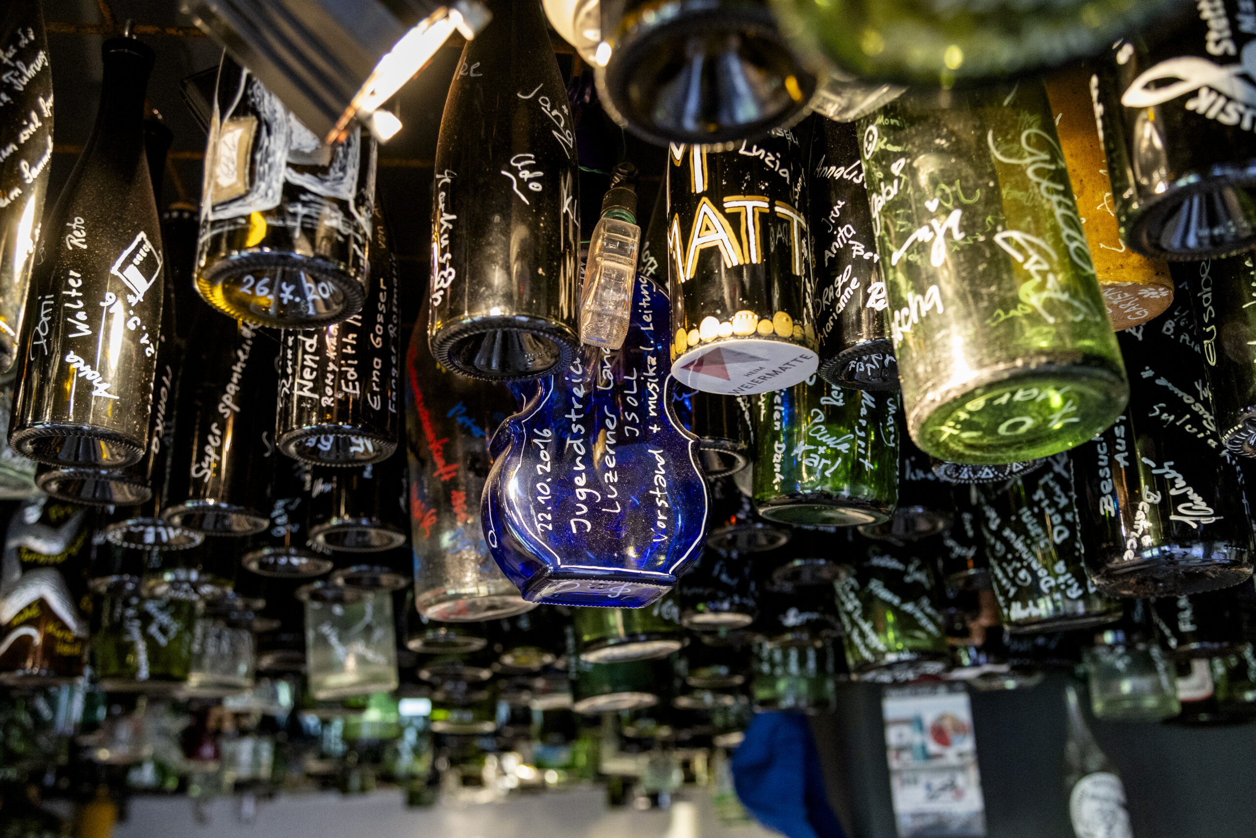 Unser Gästebuch natürlich in Form von Flaschen im Flaschenhimmel.